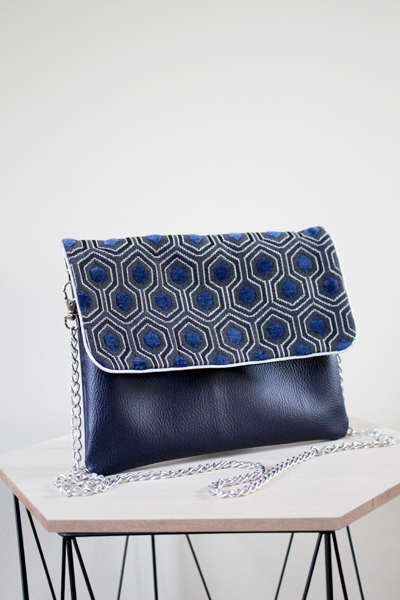 Pour le corps de la pochette, j’ai choisi un simili cuir bleu marine légèrement grainé.