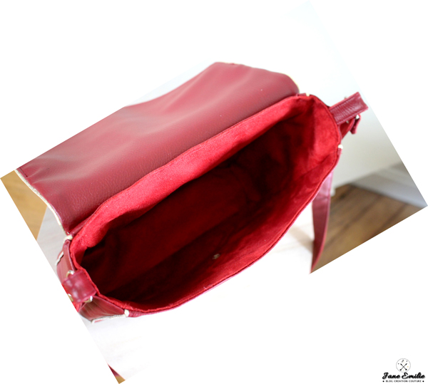 Enfin, la doublure de la besace est entièrement faite de suédine bordeaux, so rétro ! J’adore !