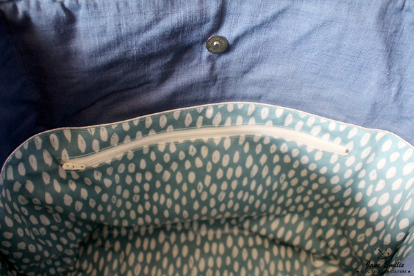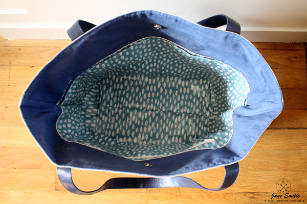 Afin de le rendre aussi pratique que joli 🙂 j’ai confectionné la doublure du cabas dans le même lin lamé irisé mais surtout dans une toile cirée. Pourquoi la toile cirée ? Tout simplement afin d’avoir la possibilité d’utiliser ce cabas comme sac de plage sans pour autant l’abîmer ! Et oui, les serviettes et/ou maillots de bain mouillés n’auront pas le dessus sur de la toile cirée 🙂