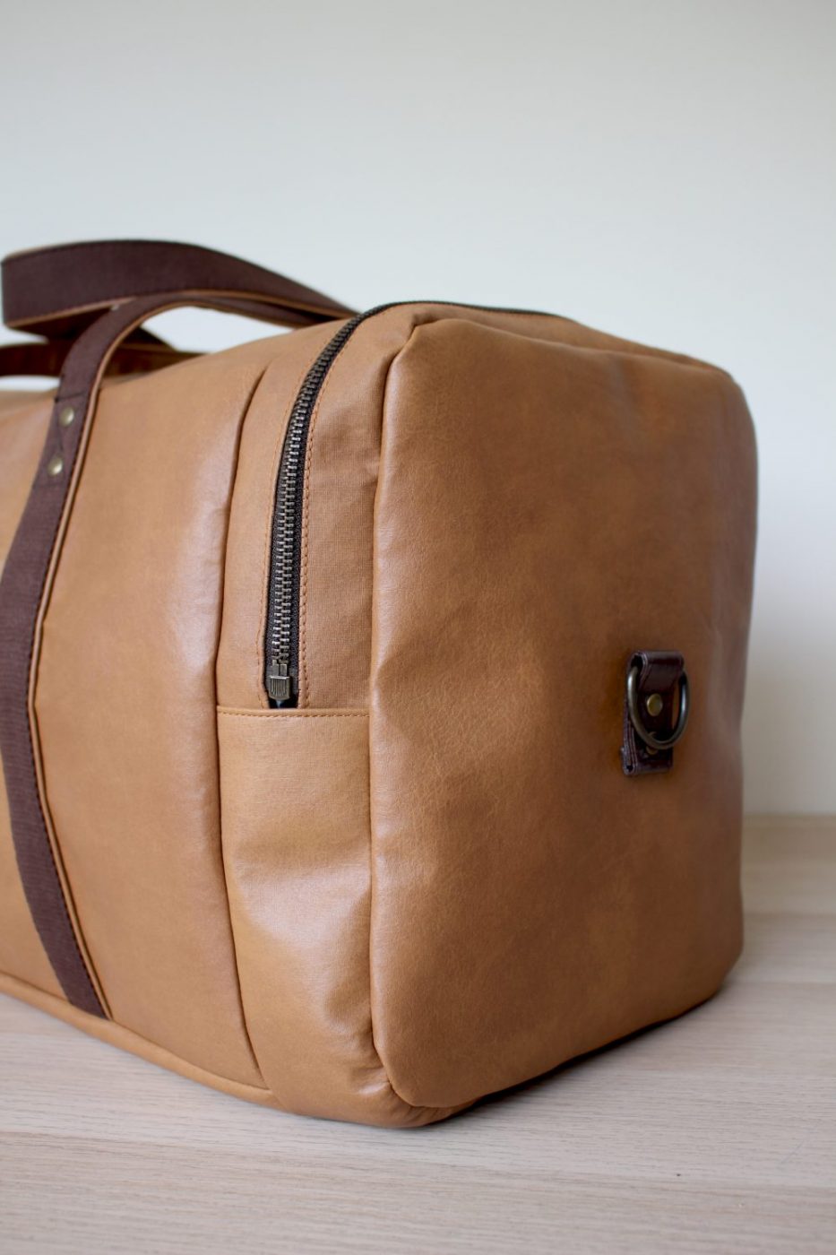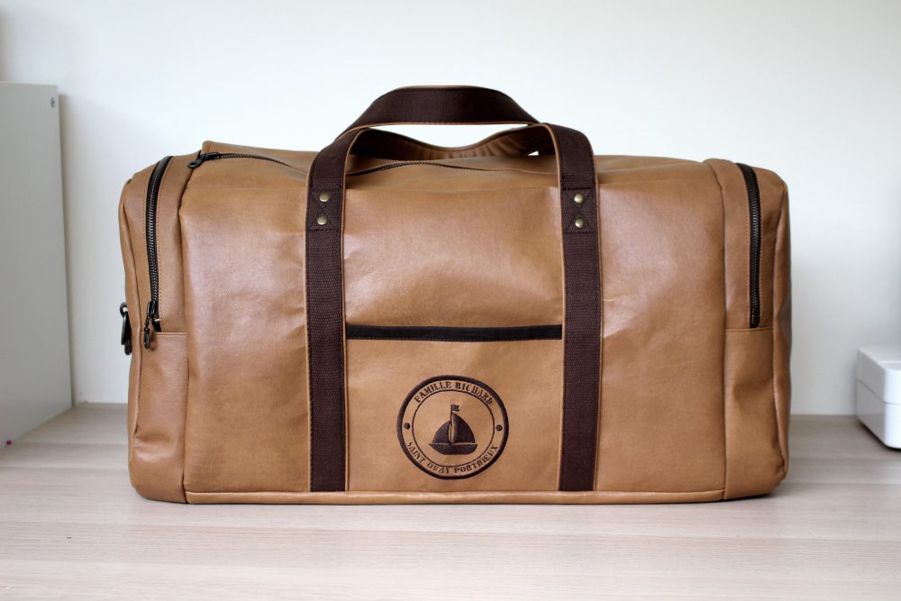 Ces petits tests sur des chutes de simili et cuir ne me suffisaient pas, il fallait que je la teste sur un projet réel, nécessitant des gestes techniques et de la puissance pour passer les grosses épaisseurs. C’est donc tout naturellement que je me suis lancée dans le patron du sac de voyage Stockholm.