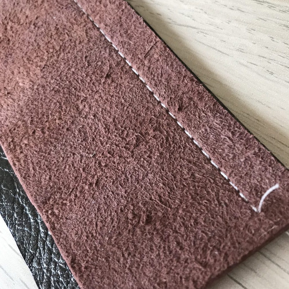 J’ai donc commencé par un assemblage simple de 2 chutes de cuir puis une surpiqure sur l’endroit. Magnifique, je dois avouer que j’ai rarement obtenu une finition aussi soignée et régulière sans user de quelques ruses ! Grace au pied Téflon livré avec la MAC et avec les bons réglages, le cuir est passé sous le pied de biche avec une facilité étonnante et même déconcertante !