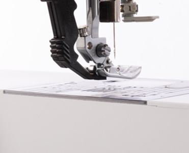 - s’adapte sur un large assortiment de pieds presseurs pour une variété de techniques.