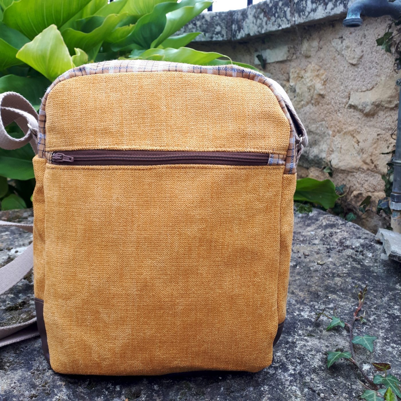 La fermeture de la besace se fait grâce à une longue ouverture zippée.