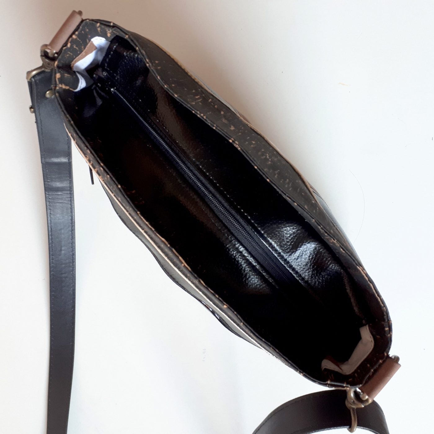 La fermeture de la besace se fait grâce à une longue ouverture zippée centrale.