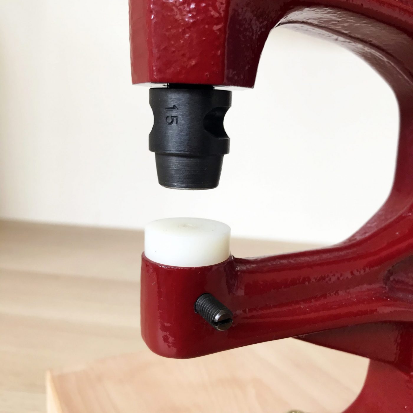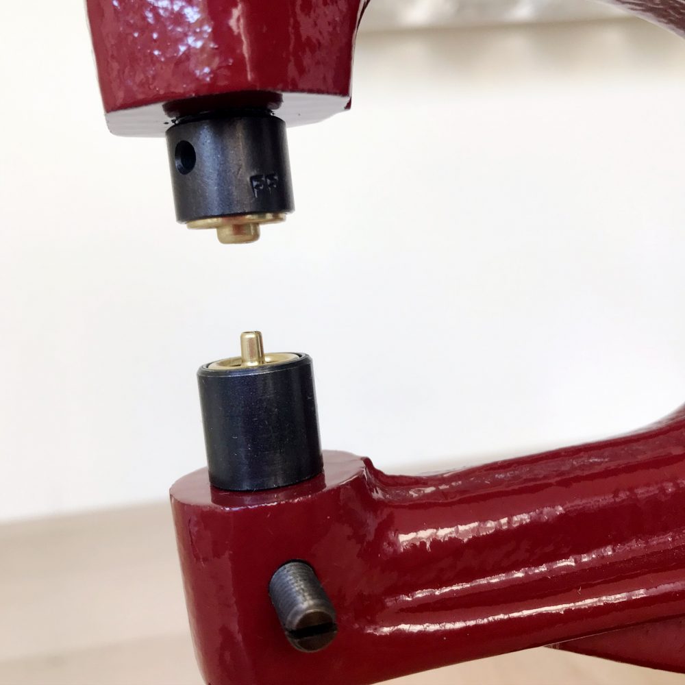 La presse d’établi N3 est une machine professionnelle pour poser sans effort et avec un serrage parfait les boutons pressions, les œillets et les rivets. Vous pouvez également faire des trous en utilisant des emporte-pièces pour presse d’établi et un tas en laiton ou ertalon.