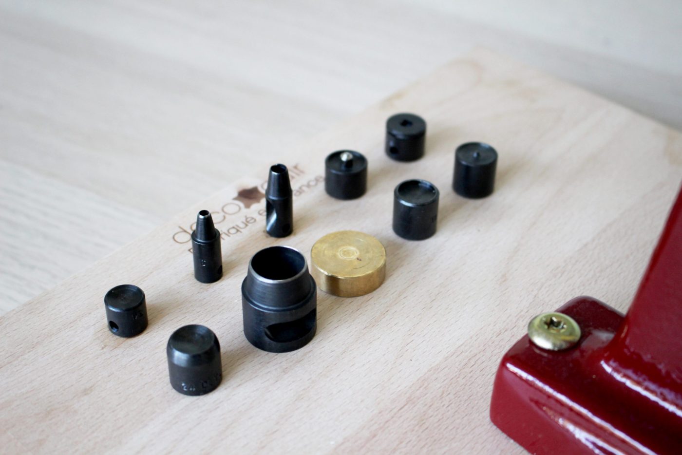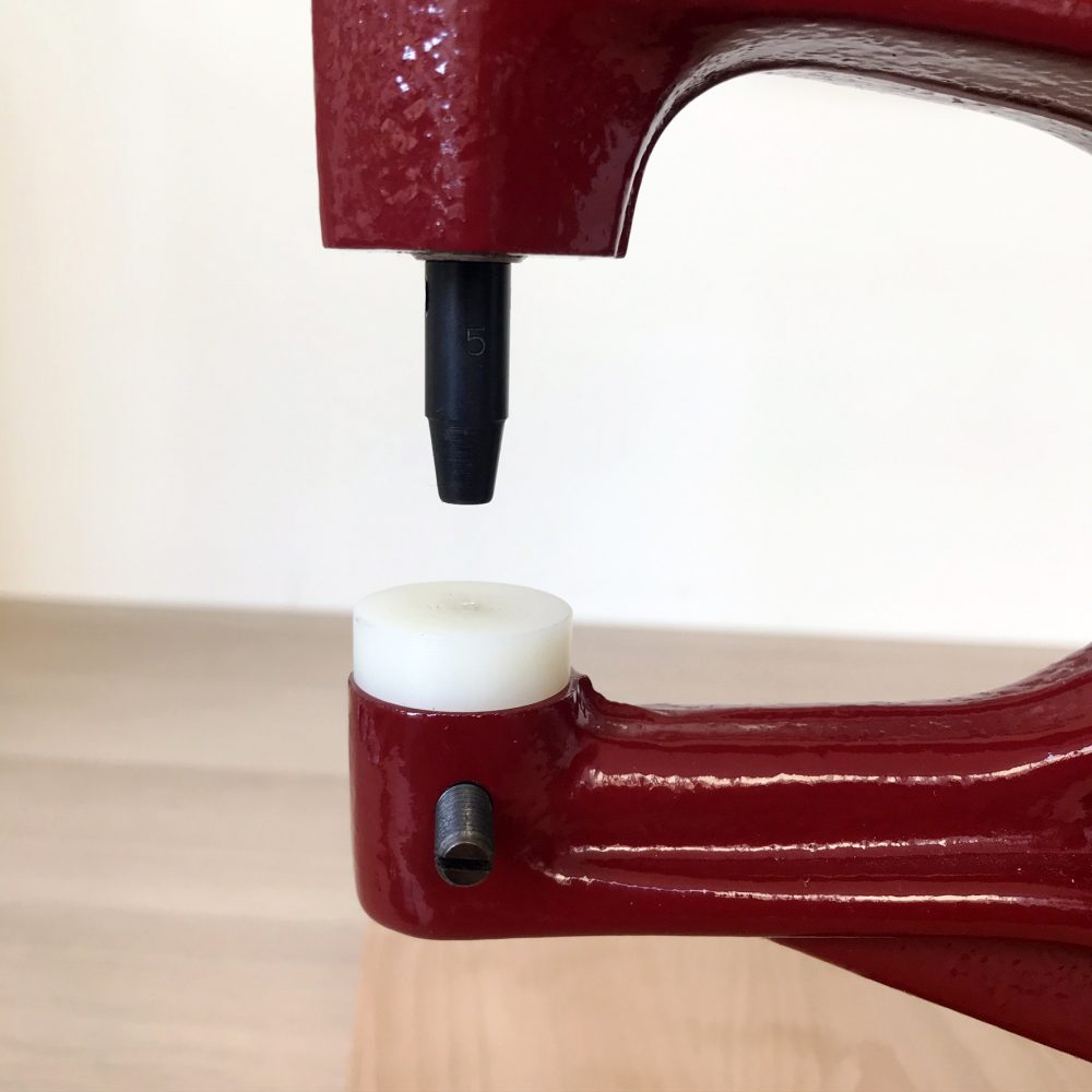 J’utilisais jusqu’ici les accessoires de pose fournis dans les kits d’œillets et très souvent, je n’étais pas satisfaite. Mon œillet et sa rondelle ne s’emboitaient pas correctement ou je déformais l’œillet.