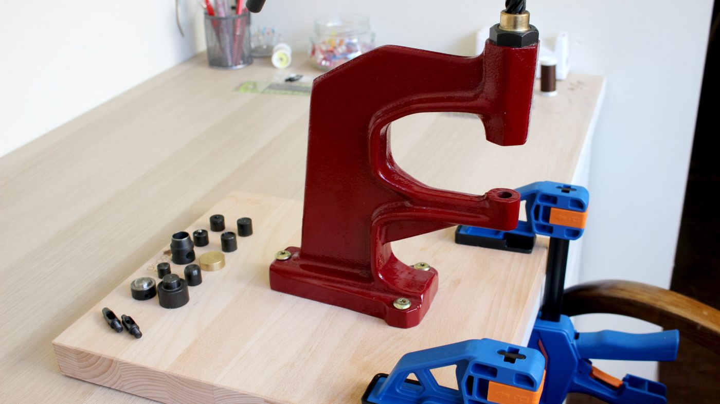 Grace à Déco Cuir, un de mes partenaires chouchou, j’ai eu l’énorme privilège de tester la presse d’établi N3 ainsi que ses accessoires de pose de rivets, œillets et pressions.