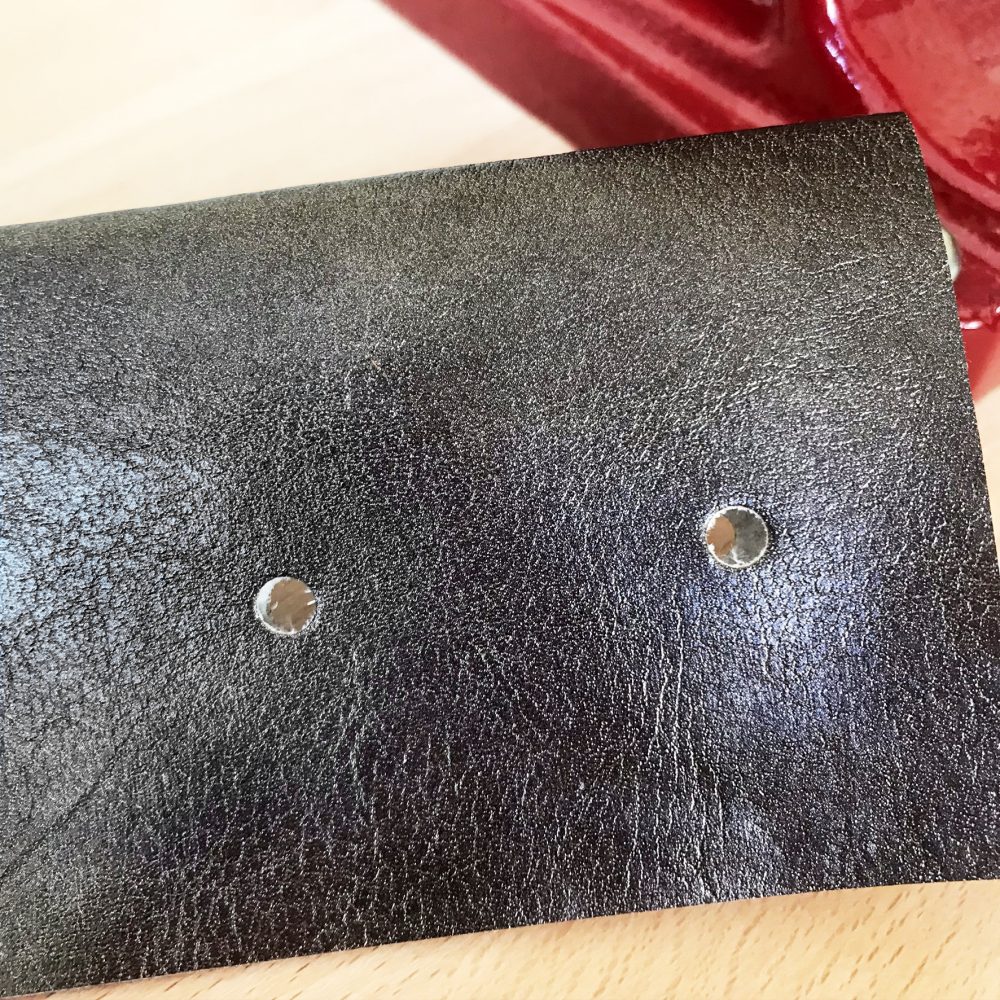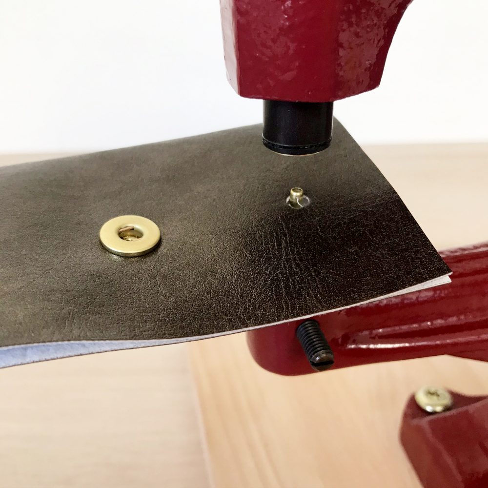 Avec la presse d’établi, les œillets sont parfaitement posés, sans effort et avec un résultat vraiment professionnel ! Je suis conquise !