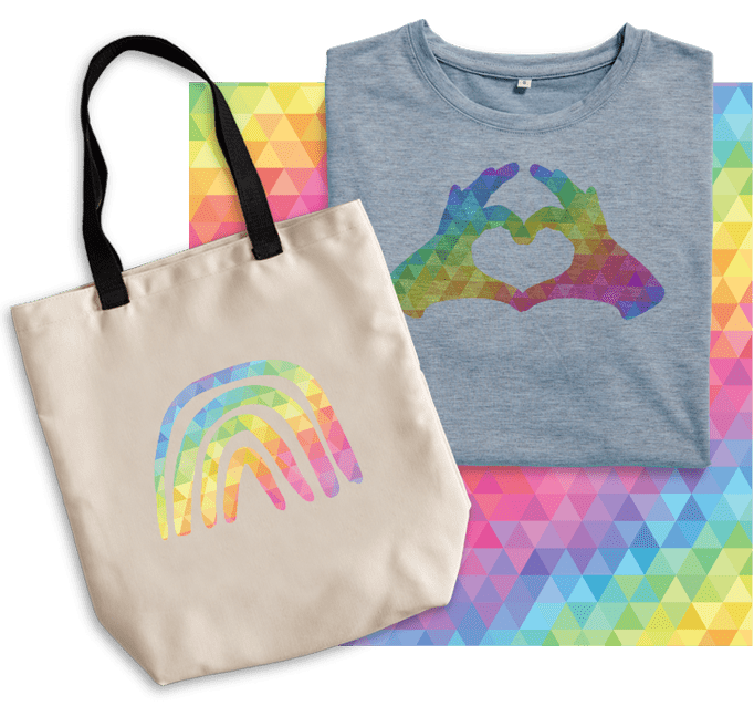 Vous pouvez utiliser l’Infusible Ink sur des supports en céramique et sur un large panel de supports textiles : sacs, trousses, vêtements, etc…, à condition que ceux-ci soit de couleur claire et que leur composition soit d’au moins 65% de polyester. Cricut propose d’ailleurs un grand choix de supports allant du tote-bag à la trousse de maquillage, en passant par des housses d’oreillers, des T-shirts, etc…