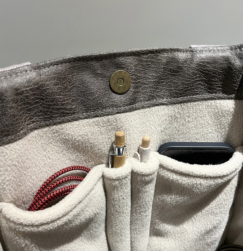 Pour le côté fonctionnel, j’ai réalisé de multiples poches diverses et variées afin de ranger tout votre petit bazar du quotidien.