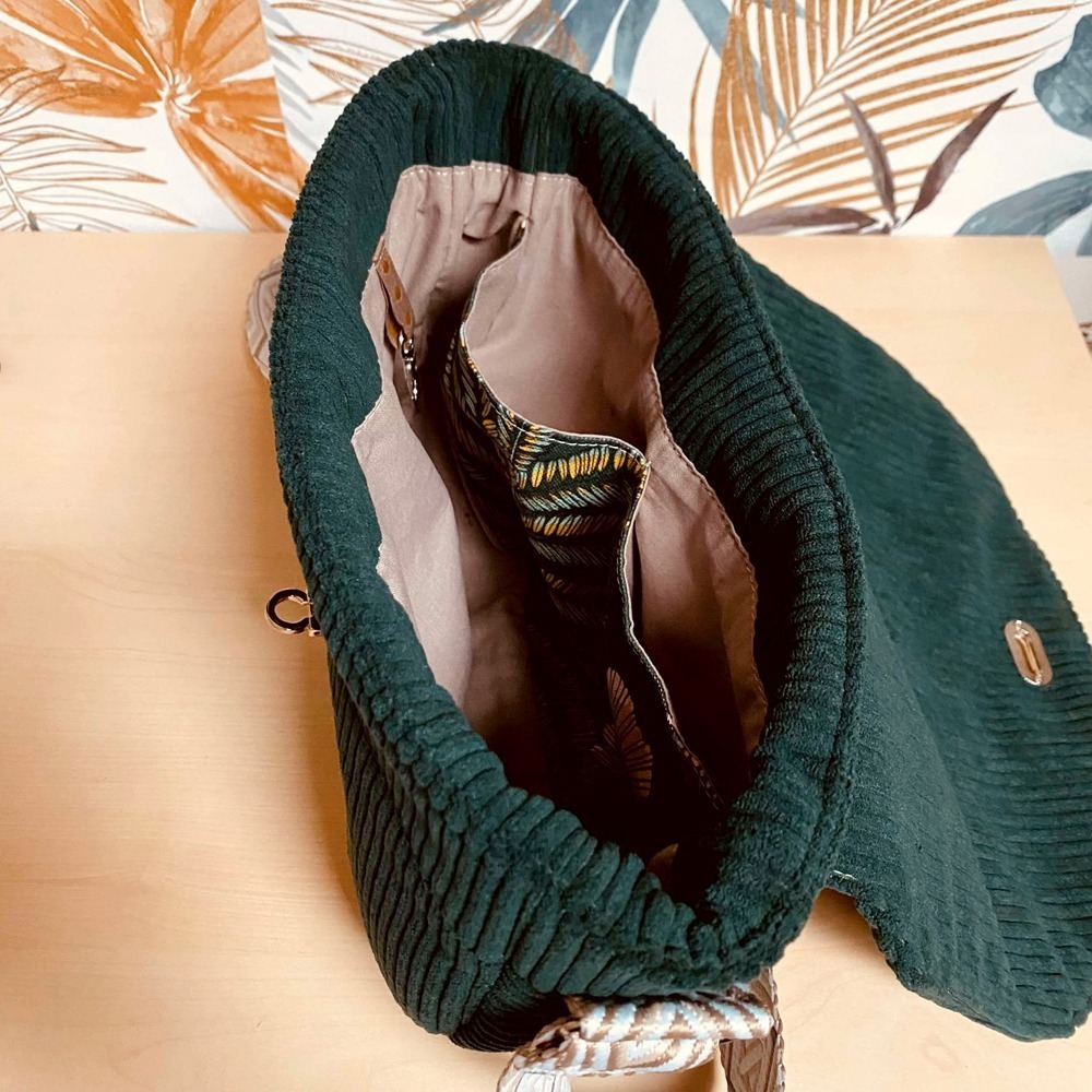 - à l’intérieur et au dos du sac, 1 très grande poche avec possibilité de la compartimenter ;