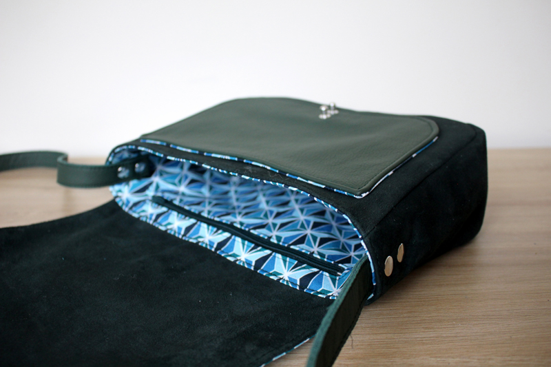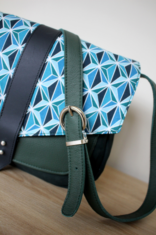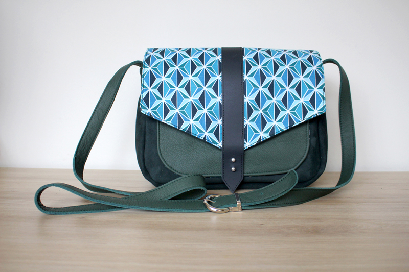 Mais là, ce n’était plus possible, le manque était trop fort, il me fallait coudre à tout prix ! L’anniversaire de ma belle-soeur tombant à pic, cette reprise en couture allait lui être destinée. Elle avait complètement craqué sur la forme, le design et la capacité de La Besace Parisienne ; tu sais la jolie Besace en cuir dans les tons verts de mon livre 😉